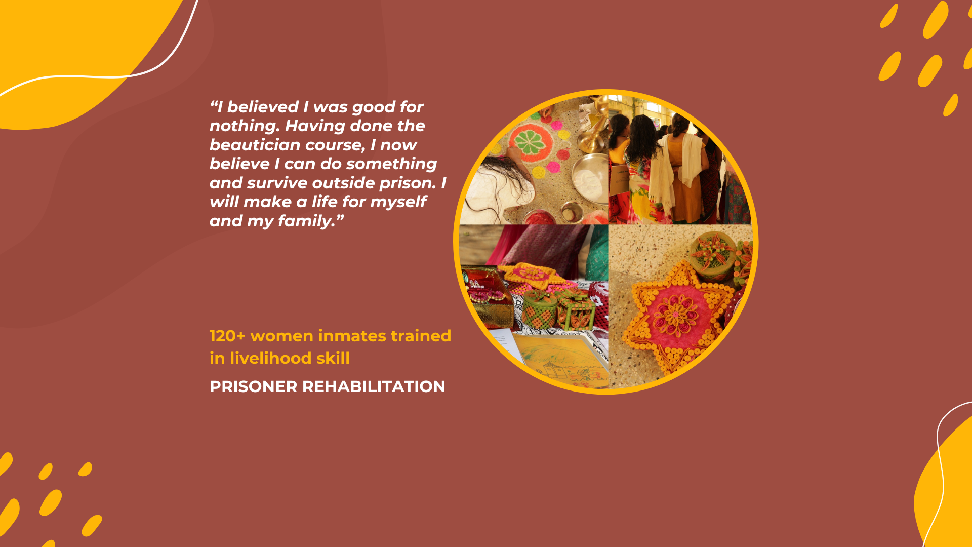 "I believed I was good for nothing. Having done the beautician course, I now believe I can survive outside prison and make a life for myself and my family.”