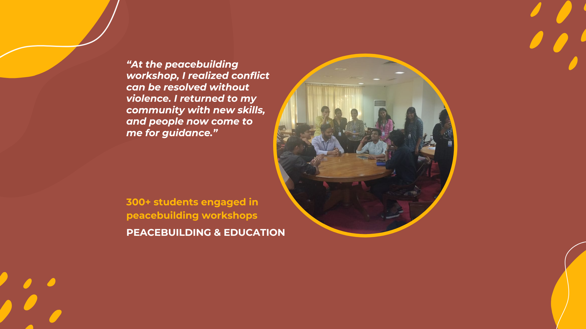Support Peacebuilding Workshops.