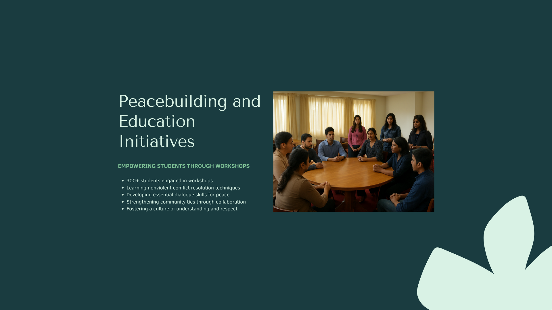 These initiatives grow organically from our core conviction: peace is sustained when both people and the planet are cared for.
